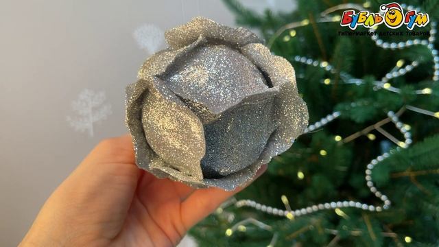 332274 Украшение елочное шар Роза блестящий серебристый 8см