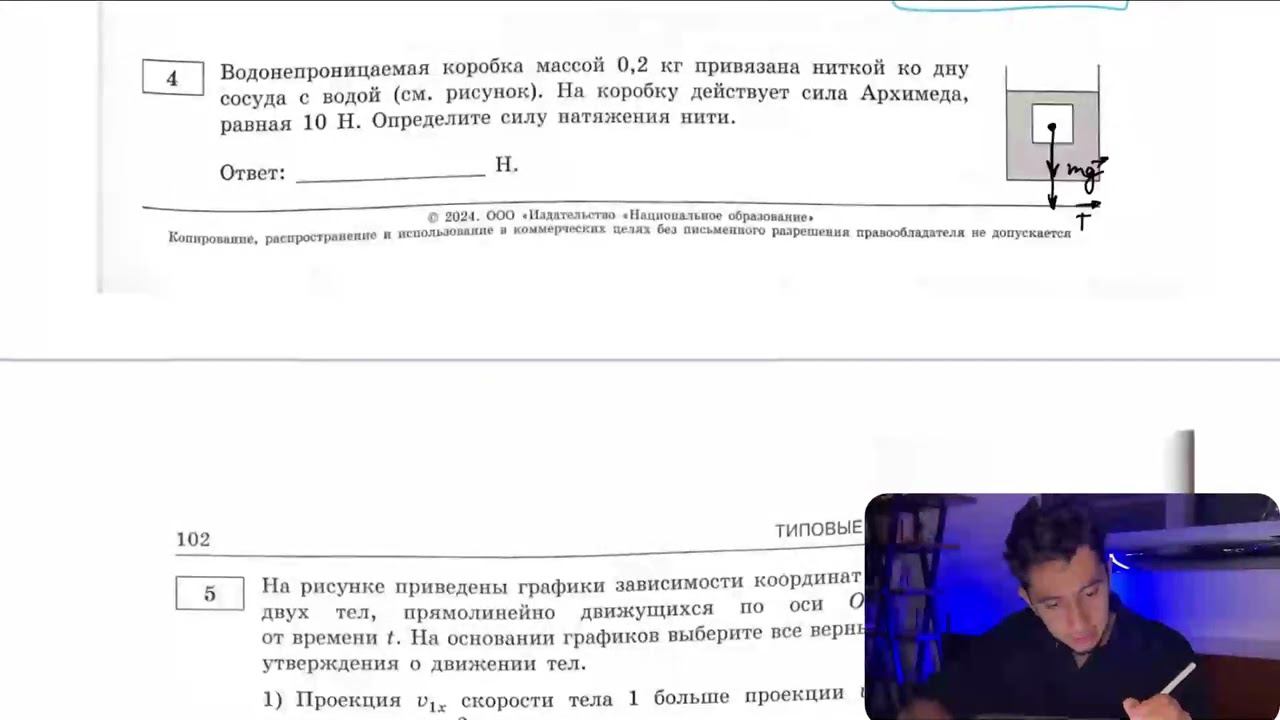 Водонепроницаемая коробка массой 0,2 кг привязана ниткой ко дну сосуда с водой (см. рисунок) - №