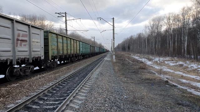 3 апреля 2021 года в 17:43 перегон Детково-Усады Юг БМО Московская железная дорога favorite signal at VL10u-102 with a freight train in the south of BMO near Povadino April 3, 2021 at 17:43 section of Detkovo-Usadi South BMO Moscowskaya railway