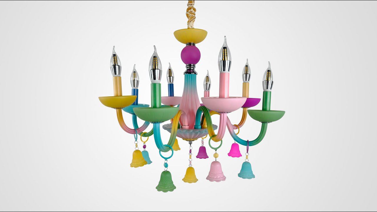 Потрясающая коллекция RAINBOW идеальное решение для стильных детских комнат и просто праздничных людей! Ярко, весело, а главное позитивно! Из коллекции у нас есть не только люстры, но и бра. На видео диаметр 63 см на 8 лампочек с цоколем Е14. Ссылка - https://imperiumloft.ru/dizajn-loft/194242-23.html