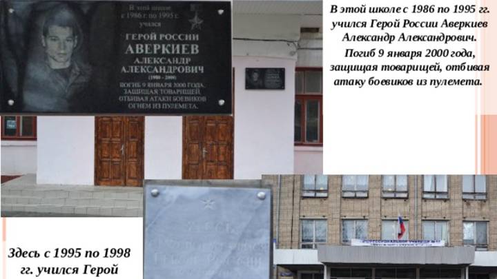 Аверкиев Александр Александрович (27.02.1980, Новочеркасск — 09.01.2000, Чеченская Республика), рядовой. По окончании средней школы № 9 и ПТУ-52 получил специальность слесаря по ремонту и обслуживанию автоаппаратуры. В 1999 призван во внутренние войска МВД Российской Федерации. А., наводчик пулемета одного из разведывательных подразделений внутренних войск, отличился 9 января 2000 года в бою с превосходящими силами незаконных вооруженных формирований, напавшими на колонну внутренних войск на территории Чеченской Республики. Погиб в этом бою. Указом Президента РФ от 11 июля 2000 рядовому А. А. Аверкиеву присвоено звание Героя Российской Федерации (посмертно). На здании ПТУ-52 и на доме, где жил Герой, установлены мемориальные доски. #герой #novocherkassk_v_foto #video Постинг | Информация | Познание