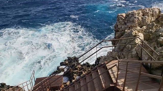 Спуск в пещеру монахов-отшельников под церковью Космы и Дамиана. Внутрь войти не позволили волны
