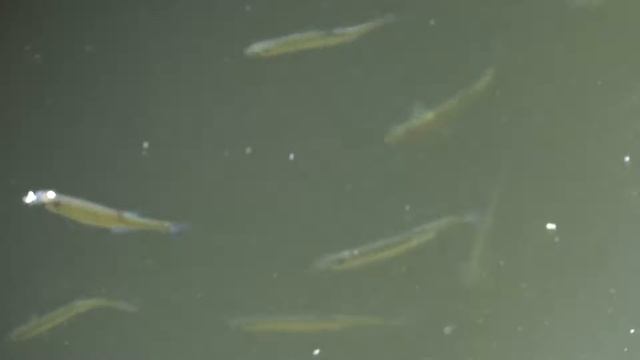 Мальки плавают у причала на набережной