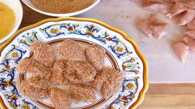 Среди своих друзей не знаю ни одного человека, который бы отказался от хрустящих куриных домашних наггетсов. Раз в месяц все собираются у меня дома, и я радую их этим блюдом по данному рецепту. Ингредиенты: Куриная грудка500 грамм, Панировочные сухари150-200 грамм, Яйцо2 штуки, Соус "Шрирача"100 мл, Мед1,5 ст. ложки, Кунжут1,5 ч. ложки, Паприка1,5 ч. ложки, Растительное масло100 мл, СольПо вкусу, Черный молотый перецПо вкусу, Вода1 ч. ложка, Благодарим за просмотр! Подписывайтесь на канал🍕 Поделитесь своим мнениенм о рецепте в комментариях!