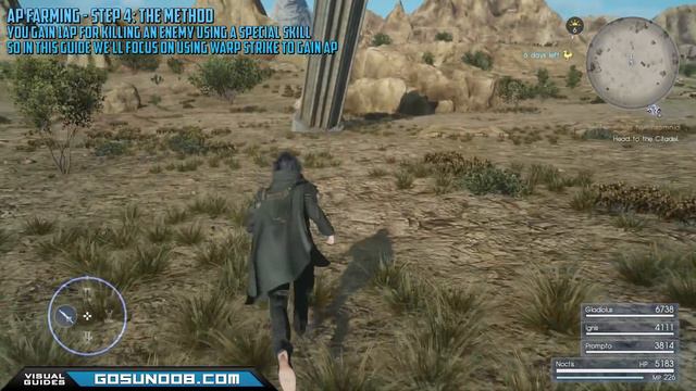 One of the best and fastest AP farming methods, depending on your weapons you can farm up to 40ap and more per 5 minutes in FFXV. For an in-depth guide, clicky here: http://www.gosunoob.com/final-fantasy-xv/ffxv-ap-farming/ Time Seek / Steps [00:05] #1 The Beast Whistle [00:24] #2 Choosing the Weapon (Greatsword recommended) [00:35] #3 Location [00:49] #4 The Method [00:59] #5 Summoning [01:10] #6 Warp-Strike [01:28] #7 Repeat! This is a part of our #ffxv coverage, you can find all needed guides and walkthroughs at: http://www.gosunoob.com/final-fantasy-xv/ffxv-guides-walkthroughs/ Subscribe ► http://bit.ly/1Un6ZhR If you found our video guide helpful, please like and subscribe. Follow the Noob: http://www.gosunoob.com/ http://www.twitch.tv/realgosunoob https://www.facebook.com/gosunoob https://twitter.com/gosunoob https://plus.google.com/+Gosunoob/ `````````````````````````````````````````````````````