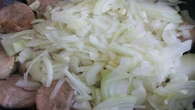 Макароны со свининой