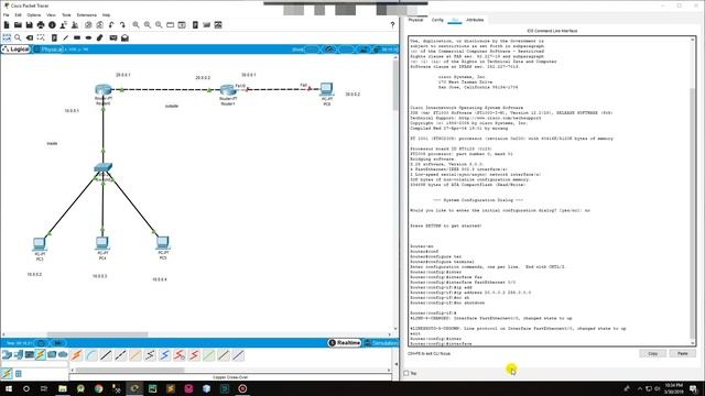Command : Router 1: No Enable Configure terminal Interface FastEthernet 0/0 Ip address 10.0.0.1 255.0.0.0 No shutdown Exit Interface FastEthernet 1/0 Ip address 20.0.0.1 255.0.0.0 No shutdown Exit Router 2: No Enable Configure terminal Interface FastEthernet 0/0 Ip address 20.0.0.2 255.0.0.0 No shutdown Exit Interface FastEthernet 1/0 Ip address 30.0.0.1 255.0.0.0 No shutdown Exit For Router 1 Access-list 10 permit 10.0.0.0 0.255.255.255 Interface fa1/0 Ip nat inside Exit Interface fa0/0 Ip nat outside Exit Ip nat pool mypool 20.0.0.1 20.0.0.6 netmask 255.255.255.0 Ip nat inside source list 10 pool mypool Ip route 0.0.0.0 0.0.0.0 20.0.0.2 Exit Debug ip nat