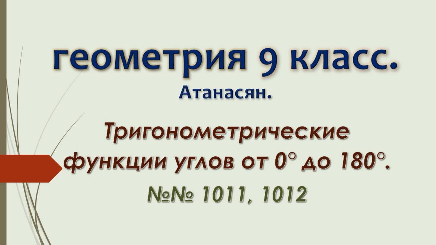 https://dzen.ru/profile/editor/irinaklok https://vkvideo.ru/@club228129393 Геометрия 9 класс по учебнику Атанасяна. В этом видео порешаем задачи из учебника по теме Тригонометрические функции углов от 0° до 180° 00:00:00 № 1011 00:12:25 № 1012