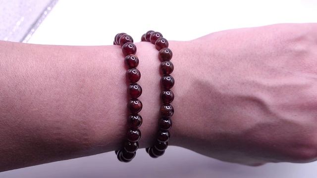 Браслет из бусин: Гранат Гессонит. На резинке. Природный камень, без облагораживания. Размер бусин: ~8 мм. На запястье в обхвате: 1) - 18 см. 2) - 17 см.
