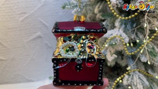 331533 Украшение елочное Сундук Сокровищ разноцветный стекло 10см