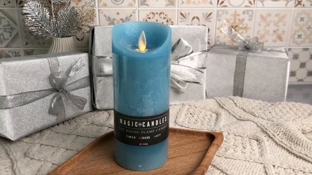 Восковая свеча МЕРЦАЮЩАЯ, голубая, тёплый белый, колышущийся язычок, 18х7.5 см, батарейки, MB-20222