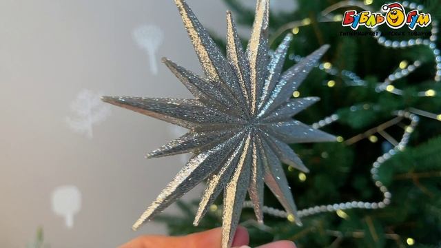 318439 Елочное украшение Звезда многогранная глянцевое серебро лофт 12см