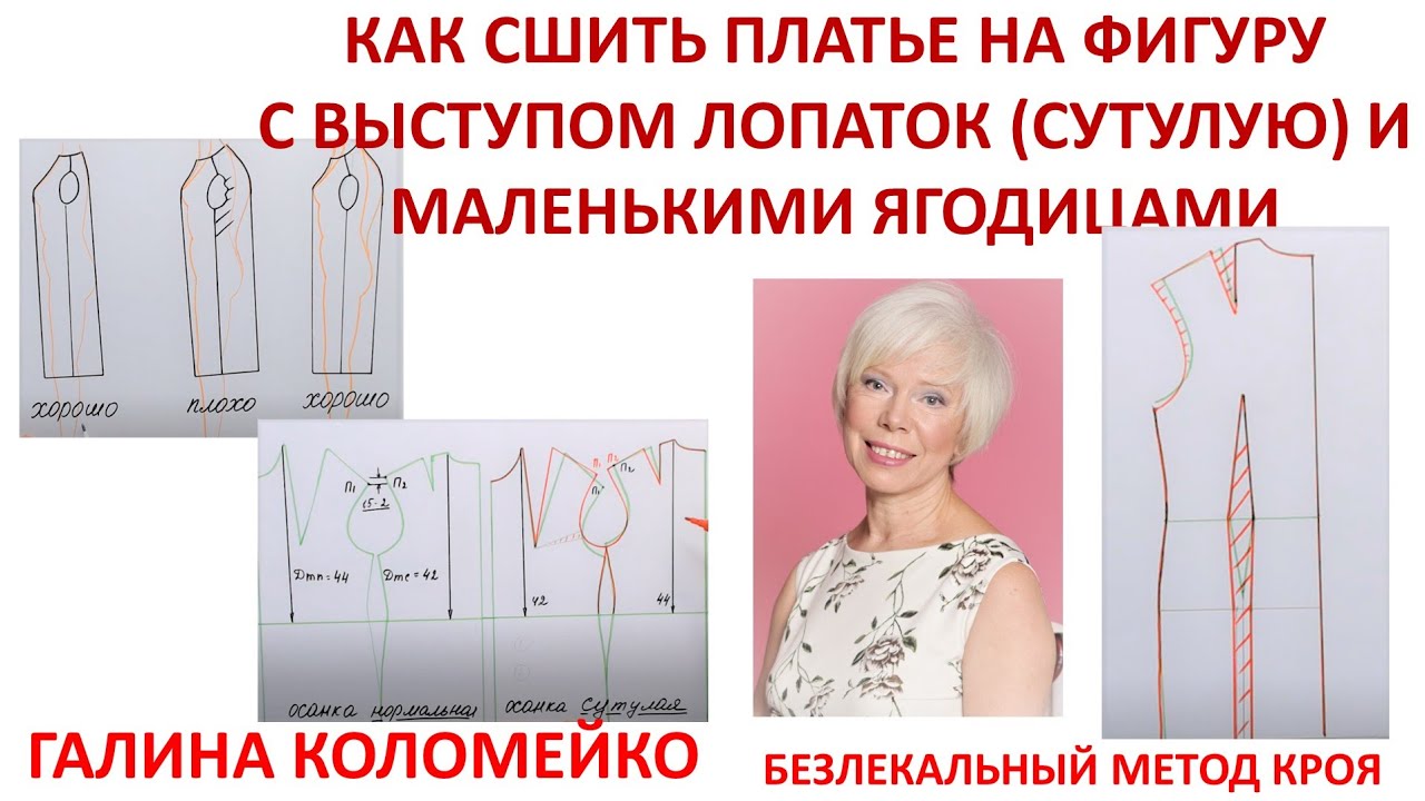 Сегодня на канале Галины Коломейко продолжение темы нестандартной фигуры. Как сшить платье на фигуру очень сутулую с маленькими ягодицами. Вернее как поправить основу или базовую конструкцию, чтобы изделие сразу село по фигуре и сзади не торчал 'хвостик'. Многие из вас после выхода видео о выступающем животе, стали просить меня рассказать о фигуре, если у нее выступает и живот и лопатки одновременно. Или есть явная сутулость. Но чтобы подойти к ответу на этот вопрос, надо сначала рассказать про выступ лопаток, или плоские ягодицы, что не редко происходит в жизни. Вы отлично понимаете, что из 6 признаков нестандартной фигуры, в одной может быть смешано что угодно. Поэтому разбираемся с каждым в отдельности, а в продолжении темы я расскажу о фигуре с выступом лопаток и живота. Приятного вам просмотра. Всегда ваша Галина Коломейко. Видеошкола https://kolomejko.ru/land-videoschool Видеокнига Создаём вашу идеальную выкройку https://kolomejko.ru/books#!/tproduct/214180955-1497456130776 Видеокнига Раскрой сразу на ткани https://kolomejko.ru/podrobnosti-raskroj-na-tkani Видеокнига Шьём ваше плечевое изделие https://kolomejko.ru/more-book-plechevoe-izdelie Видеокнига Брюки конструирование https://kolomejko.ru/podrobnosti-bruki-konstruirovanie Видеокнига Брюки моделирование https://kolomejko.ru/podrobnosti-bruki-modelirovanie Видеокнига Брюки технология как скроить и сшить брюки https://kolomejko.ru/podrobnosti-book-bruki Видеокнига Современные мужские брюки https://kolomejko.ru/podrobnosti-muz-bruki-uzkie Видеокнига Мужские брюки большого размера https://kolomejko.ru/podrobnosti-bruki-muz-bolshoj-razmer Мой сайт https://kolomejko.ru Инстаграмм https://www.instagram.com/galinakolomejko Фейсбук https://www.facebook.com/galinakolomeyko Вконтакте https://vk.com/webinar_galina_kol Помощь каналу карта Сбербанка 4276 3801 2388 8401 Галина Леонидовна К.