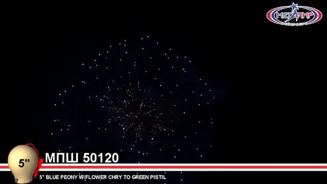 МПШ50120 Высотный залп 5 дюймов 120м 120мм Голубой пион с золотистым центром цветком с перехдом в зе