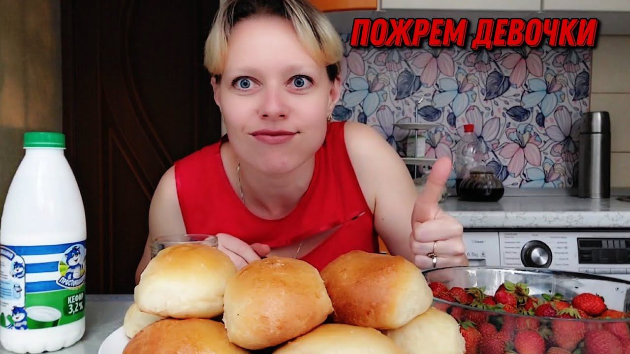 Мукбанг Пирожки Клубника и кефир