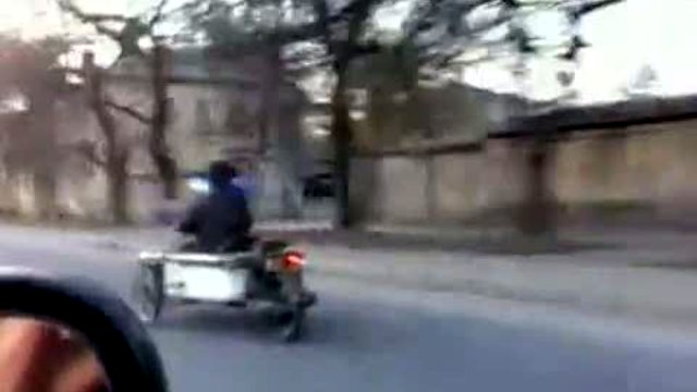 Водитель-изобретатель надел шлем и давай гонять.
