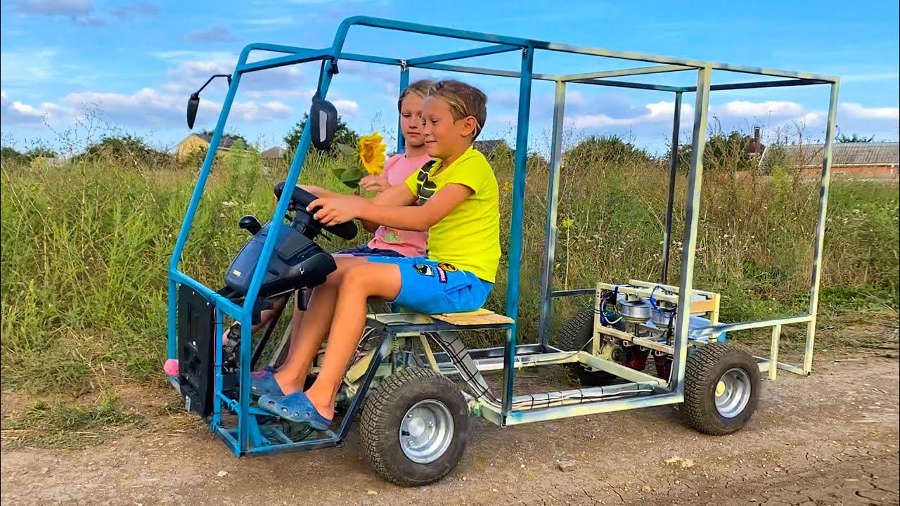 Привет. В этом видео ты узнаешь как мы строили свой детский автобус. Ты увидишь как Диана и Даня спаяли раму машины, покрасили её и отправились в первую поездку на своей самодельной машине.