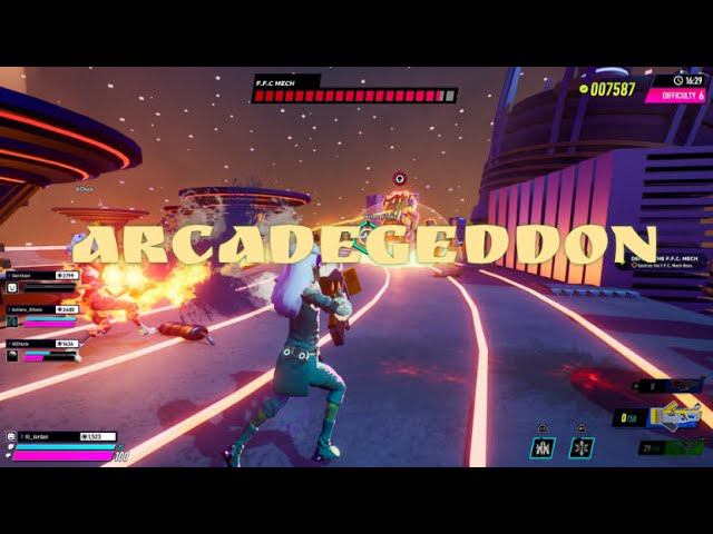 #arcadegeddon Гилли (Gilly), владелец местного зала игровых автоматов, пытается спасти свой бизнес от безликой мегакорпорации. Для этого он создаёт суперигру, но, увы, мегакорпорация взламывает её и внедряет в неё вирус. Вам нужно спасти игру и последнюю местную аркаду. В этом постоянно меняющемся многопользовательском шутере вам вместе с тремя друзьями предстоит исследовать множество биомов, проходить мини-игры, находить запрятанные сундуки и побеждать врагов и боссов самых разных видов. Arcadegeddon — это совместная многопользовательская игра, в которой сочетаются PVE и PVP, что позволяет играть с разной скоростью.