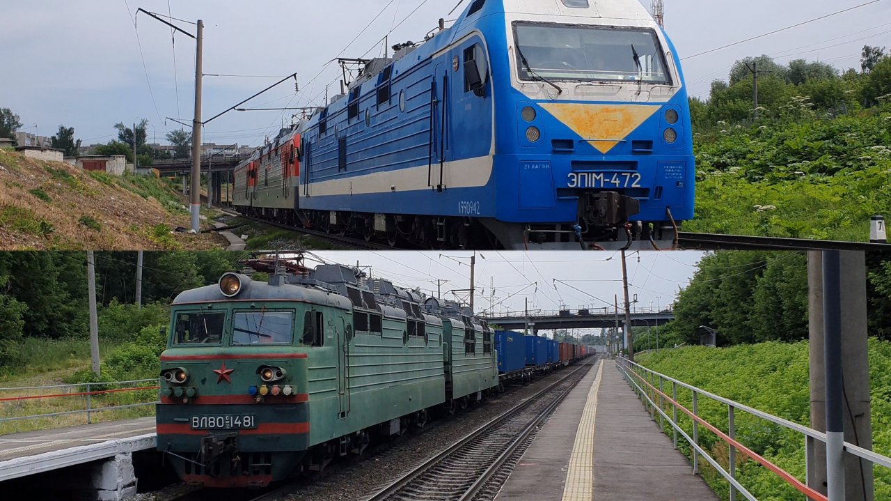сплотка ЭП1М и грузовые поезда под ВЛ80с | Муром | июнь 2021