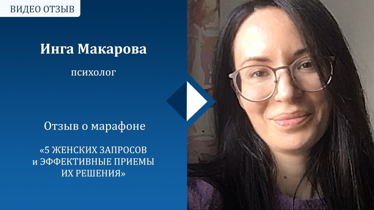 Отзыв Инги Макаровой о марафоне«5 ЖЕНСКИХ ЗАПРОСОВ и ЭФФЕКТИВНЫЕ ПРИЕМЫ ИХ РЕШЕНИЯ»
