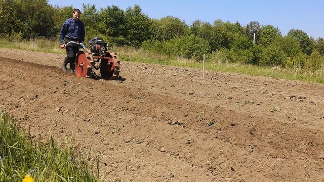 Нарезание борозд мотоблоком оснащенным редукционными мотоблочными колесами РМК-1