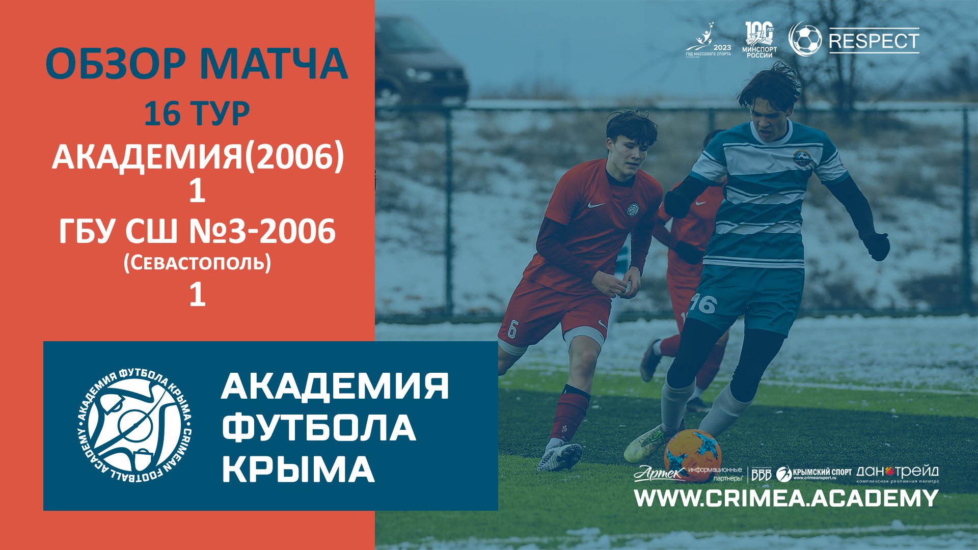 Обзор матча шестнадцатого тура Открытого первенства детско-юношеской футбольной лиги Крыма среди юношей 2006-2007 г.р. (2022/2023): Академия футбола Крыма (2006) - ГБУ СШ №3 по футболу-2006 (Севастополь). Наш сайт: https://www.crimea.academy/ Академия футбола Крыма – это большая футбольная семья, которая открыта для общественности и готова к взаимному сотрудничеству, обмену опытом и профессиональному общению. Наша цель – подготовка качественных и конкурентоспособных футболистов с учетом современных требований, а также образованных и всесторонне развитых членов современного общества. Наша приоритетная задача – отбор детей, проявивших выдающиеся способности в области футбола для совершенствования их спортивного мастерства. Команды Академии ориентированы на атакующий и зрелищный футбол, в котором удовольствие получает не только сам игрок, но и зритель. При этом интересы команды не должны идти в ущерб задаче воспитания отдельного футболиста. В основе воспитания юных футболистов в нашей Академии лежит принцип – "подготовка игрока, а не команды". #футбол #спорт #СвернёмГоры #football #soccer #sport