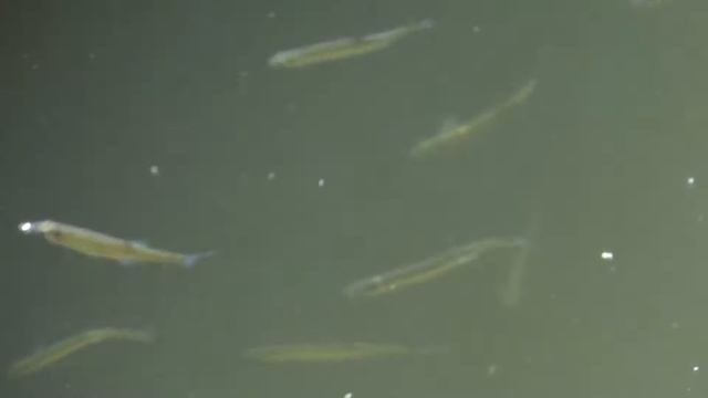 Мальки плавают у причала на набережной