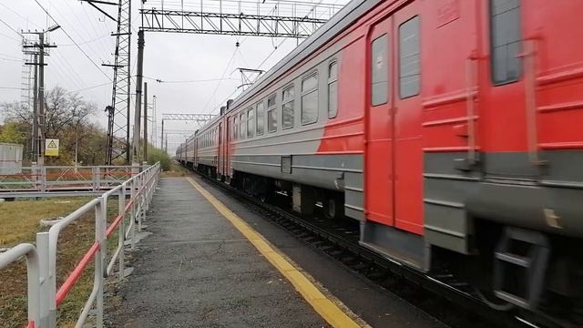 Электропоезд ЭД4М-0220 с пригородным поездом №6016 Миасс-1 — Челябинск-Главный в 6-ти вагонной составности прибывает на 1-й путь Ст. Смолино, г. Челябинск, Челябинская обл., ЮУЖД Дата: 26.09.2022