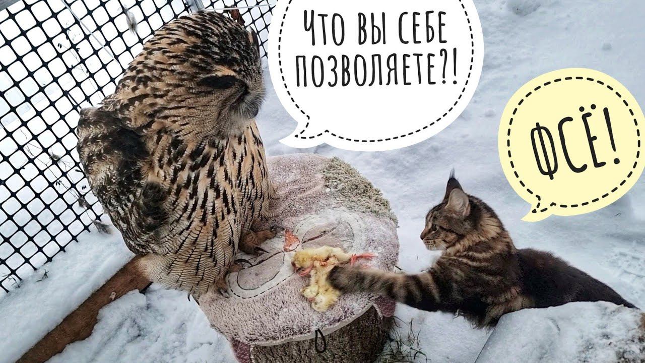 Как кошка Морошка у совы филина Ёлки вкусного цыплёнка отжала. Никакого уважения! Возмутительно!