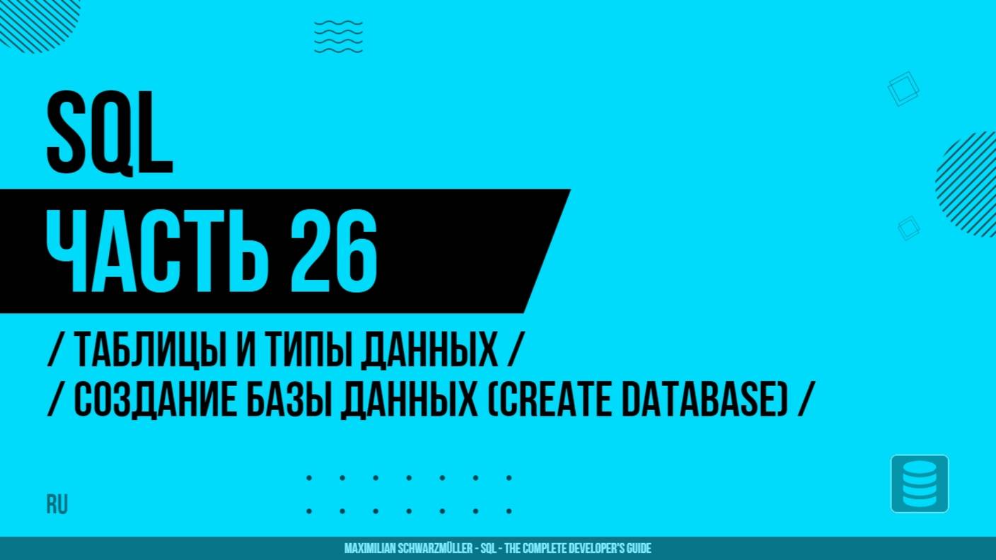 SQL - 026 - Таблицы и типы данных - Создание базы данных (CREATE DATABASE)