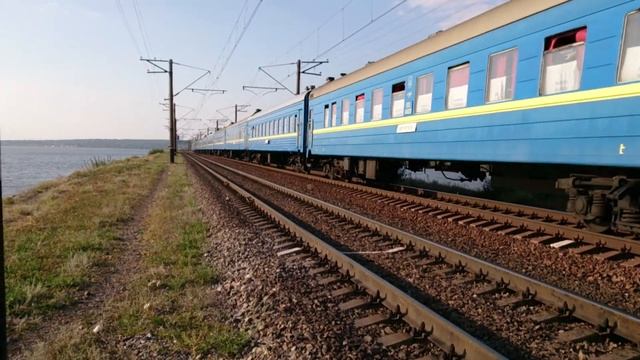ЧС7-290 с поездом №86 Симферополь-Львов летит вдоль Каховки