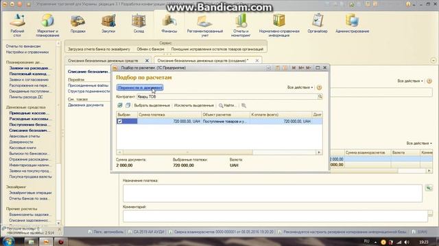 Списание безналичных ДС в УТ 3.1/Write-off of non-cash 3.1