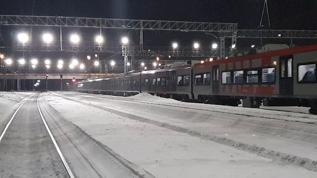 15 февраля 2021 года в 19:18 станция Царицыно курское направление Московская железная дорога Lastochka MCD in the lights of Tsaritsyno ES2G-135 February 15, 2021 at 19:18 Tsaritsyno station Kurskoe direction Moscowskaya railway