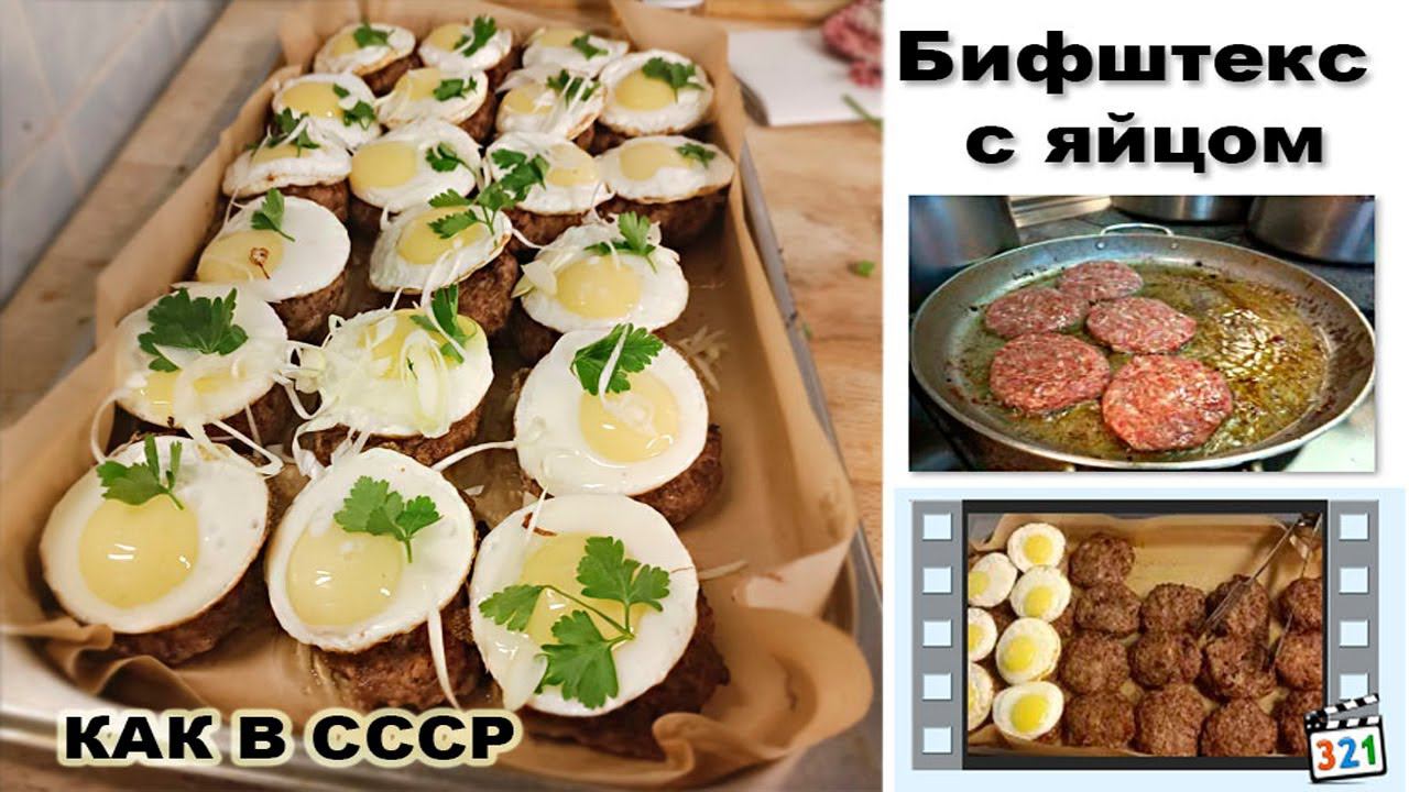 Много классических рецептов советской кухни на сайте Шеф-Россия.рф Еще в середине 19 века все рецепты бифштекса (в том числе — с яйцом) ограничивались обжаренными кусками говяжьей вырезки. И пришла эта мода к нам из Англии. Рубленные же бифштексы появились чуть позже, в 1888 году Для приготовления бифштекса с яйцом (4 порции) вам понадобится: Говядина зачищенная - 600 г, жир говяжий или шпик свиной - 200 г, вода питьевая - 50 мл, соль поваренная 14 г, перец черный молотый - 4 г, масло растительное без запаха - 60 мл, масло топленое сливочное - 60 г, яйцо куриное - 4 шт. Говядину нарежьте на крупные куски, посолите, сложите в контейнер с плотной крышкой и уберите в холодильник, минимум на 3 часа, максимум на ночь. Просоленное мясо обсушите бумажным полотенцем и измельчите на мясорубке или порубите топориками до состояния вязкого фарша. Жир прокрутите на мясорубке или пробейте в блендере, смешайте жир с питьевой водой до полной однородности и вмешайте в мясной фарш. Замешивайте фарш но не как на котлеты, долго вымешивать и отбивать фарш не нужно. Как только вы поймете что говядина объединилась с жиром и вы можете приступать к формовке бифштекса, сразу же приступайте к их разделке и сформуйте 4 бифштекса высотой около 2.5 см. Хорошенько разогрейте сковороду с растительным маслом, добавьте половину от сливочного топленого и обжарьте на сковороде бифштексы по 5 минут с каждой стороны. Температуру у сковороды не снижайте, жарьте бифштексы на самом высоком нагреве, масло обязательно будет брызгать, так что будьте аккуратны, но ни в коем случае не накрывайте сковороду крышкой, максимум решеткой от брызг. Готовые бифштексы выложите на подогретые тарелки, и дайте им немного отдохнуть. Пока бифштексы жарились, на другой сковороде нужно успеть зажарить куриные яйца, на оставшемся топленом сливочном масле, и не забудьте их посолить. Приправьте бифштексы свежемолотым перцем, выложите на каждый бифштекс яйцо и подавайте с гарниром и салатом из свежих овощей. https://t.me/+zgi1e2Ooh4thMDhi наш телеграм канал по ссылке There are many classic recipes of Soviet cuisine on the Chef-Russia.rf website Back in the mid-19th century, all steak recipes (including those with eggs) were limited to fried pieces of beef tenderloin. And this fashion came to us from England. Chopped steaks appeared a little later, in 1888 To prepare steak and eggs (4 servings) you will need: Cleaned beef - 600 g, beef fat or pork lard - 200 g, drinking water - 50 ml, table salt 14 g, black pepper ground - 4 g, odorless vegetable oil - 60 ml, melted butter - 60 g, chicken egg - 4 pcs. Cut the beef into large pieces, add salt, place in a container with a tight lid and refrigerate for at least 3 hours, up to overnight. Dry the salted meat with a paper towel and grind in a meat grinder or chop with hatchets until it becomes viscous mince. Grind the fat in a meat grinder or grind it in a blender, mix the fat with drinking water until completely homogeneous and mix into the minced meat. Knead the minced meat, but not like you would for cutlets; you don’t need to knead or beat the minced meat for a long time. Once you feel that the beef has combined with fat and you can start shaping the steaks, immediately start cutting them and shape them into 4 steaks about 2.5 cm high. Heat a frying pan thoroughly with vegetable oil, add half of the melted butter and fry the steaks in the frying pan for 5 minutes on each side. Do not reduce the temperature of the frying pan, fry the steaks at the highest heat, the oil will definitely splash, so be careful, but under no circumstances cover the frying pan with a lid, or at most with a splash guard. Place the finished steaks on heated plates and let them rest for a while. While the steaks were fried, you need to have time to fry the chicken eggs in another frying pan, using the remaining melted butter, and do not forget to salt them. Season the steaks with freshly ground pepper, place an egg on each steak and serve with a side dish and fresh vegetable salad.