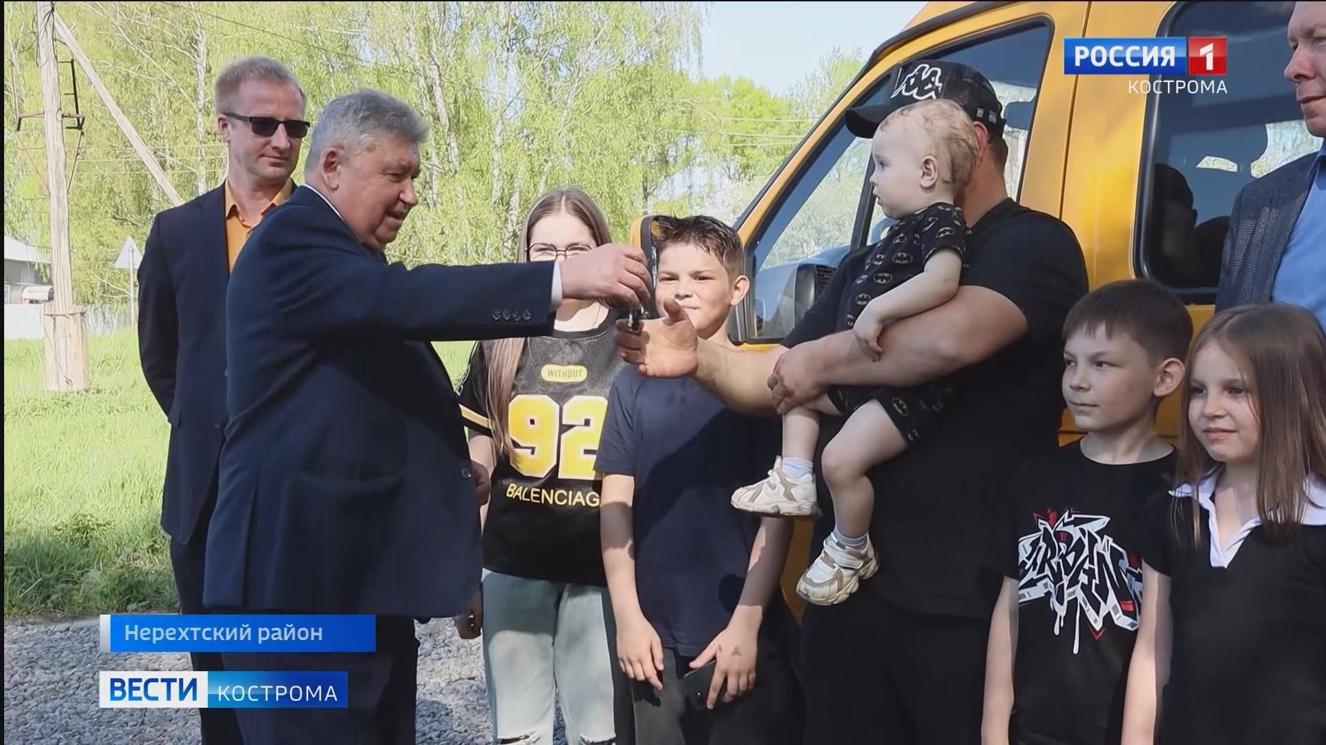 Многодетной костромской семье с 11 детьми подарили микроавтобус