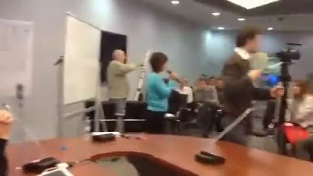 Компания Роtok8. Кабинет В.Александрова. В одном "углу" кабинета беседуют и пьют кофе Александров и Полонский, в другом - идет лекция для сотрудников.