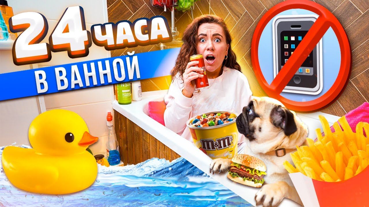 24 ЧАСА В ВАННОЙ КОМНАТЕ ЧЕЛЛЕНДЖ! НОЧЬ В ТУАЛЕТЕ БЕЗ ТЕЛЕФОНА!