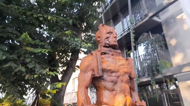 Статуя в лучах заката Краков Вечер. Закат солнца.