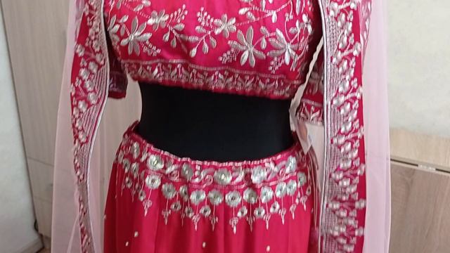 Костюм "Индийская ленга-чоли" по другому называется "Лехеньга" исполнен из индийской ткани с золотой вышивкой - заготовки. Пошив лично мой. За качество ручаюсь. В Индии вы не найдёте такое качество. Вся вышивка украшена: пришивными акриловыми стразами и термо-стеклянными стразами. Украшен весь костюм - ручная работа. Всё переливается. Цвет самой ткани - красный, ближе к малиновому. На фото и видео может искажаться. На юбке где нет вышивки тоже украшено термо-стразами только спереди. Что бы было удобно сесть в этой юбке и ничего не мешалось, сзади страз нет на уровне сидения :) Размеры: Юбка длиной 104 см. Объем по талии 96 см. Утягивается шнурком и резинка внутри. По низу 218 см. Топ-чоли: под грудью объём от 69 см до 80 см. Так как спереди вставлена резинка. Сам объем груди 94-95 см - не больше. Высота топа от плеча 34 см. Объём рукава 32 см, длина рукава 32 см. Топ на хлопковой подкладке. Можно надеть на лифчик. Застежка будет проходить прямо под застежкой топа. Его не будет видно. Всё продумано. :) У юбки шёлковый подъюбник. Дупата-накидка 110 см на 200см. из сетки. Вся украшена термостразами и тесьма расшита бусинами. Костюм сшит только в единственном экземпляре. Что добавляет ему оригинальности. Можно использовать для индийской свадьбы. Отправка разными способами. Сделала скидку на доставку. Приятных покупок :) Товары "Фестиваль весны" все сделаны и сшиты с любовью и обязательно принесут вам счастье и успех :) https://ok.ru/olikmaharani https://vk.com/olikmaharani