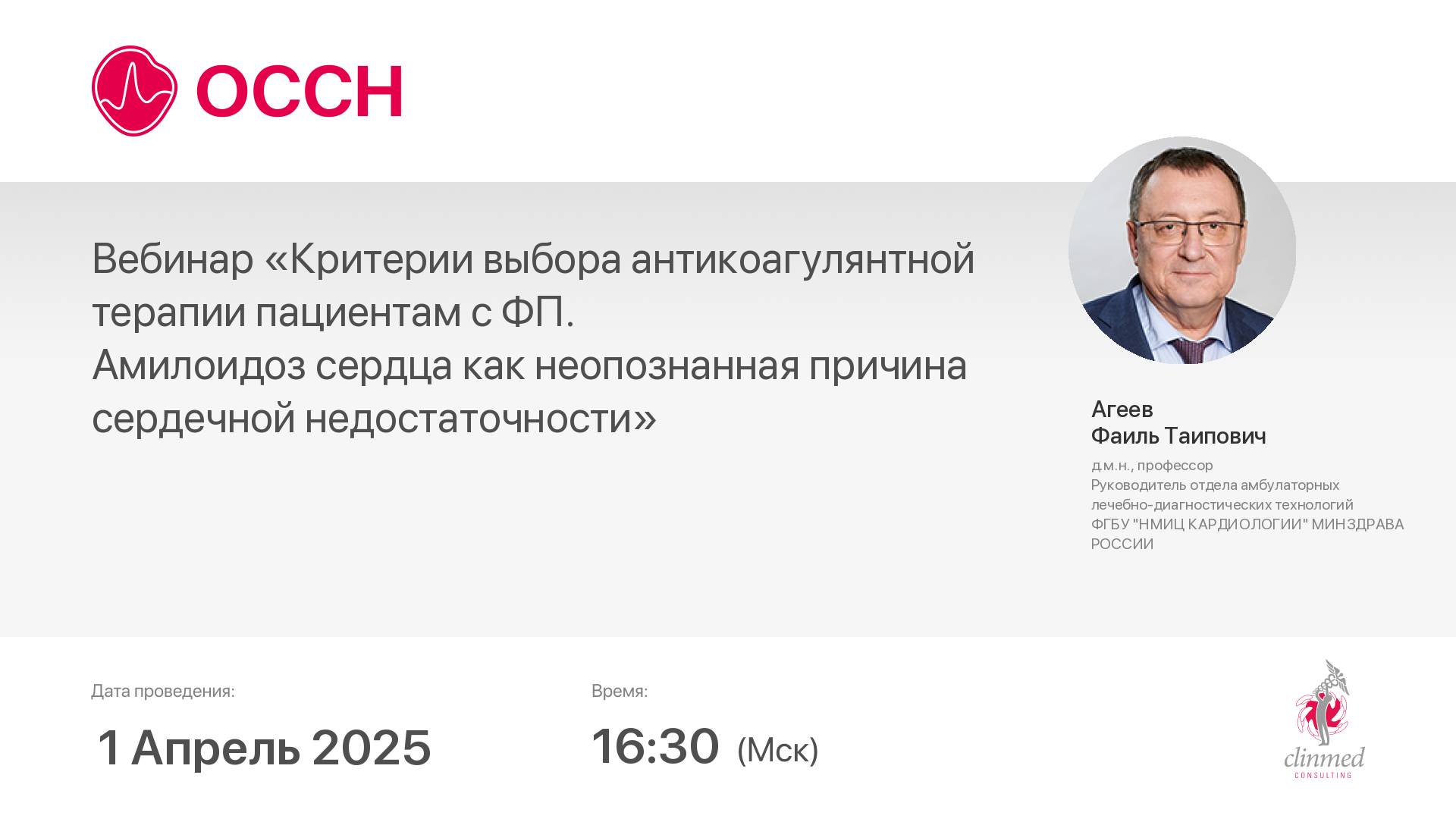 Вебинар «Критерии выбора антикоагулянтной терапии пациентам с ФП. Амилоидоз сердца как неопознанная