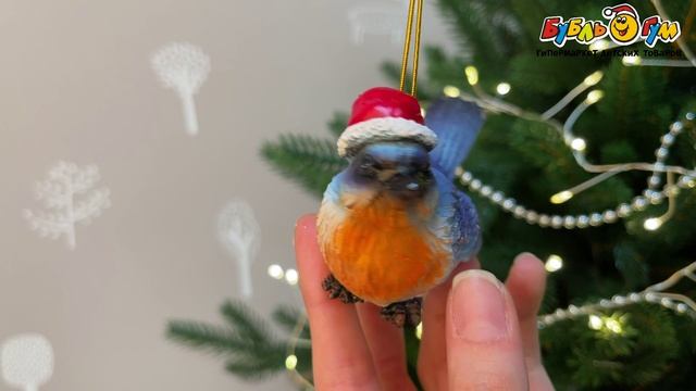 333632 Украшение елочное Птичка в красной шапочке реалистичное синее 6см