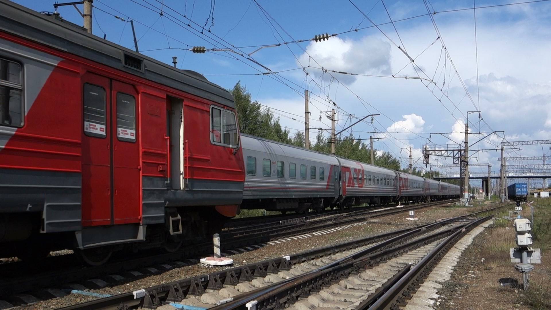 Снято на станции Нижний Новгород Сортировочный. Встречная электричка ЭД9М-0134 Гороховец - Нижний Новгород, прибывает к платформе Кондукторская #поезд #железнаядорога #ржд #теремок #чс4т #электричка #станция
