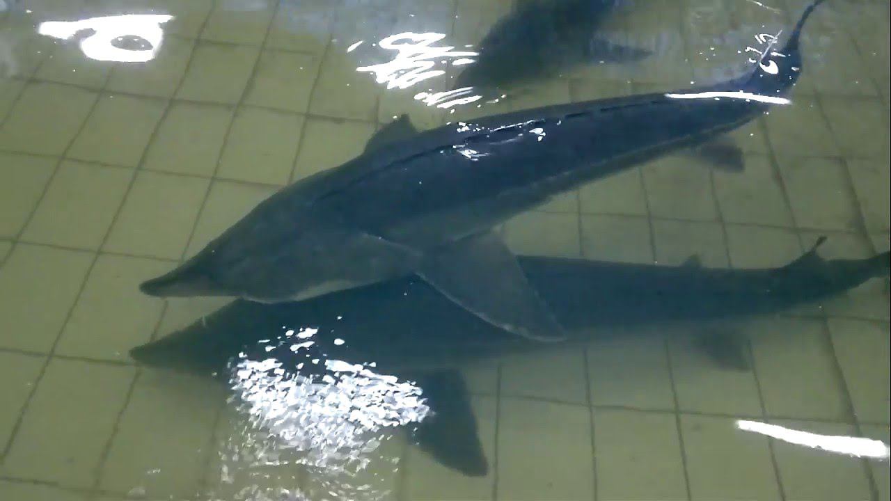 Калуга в бассейне.#рыбоводство