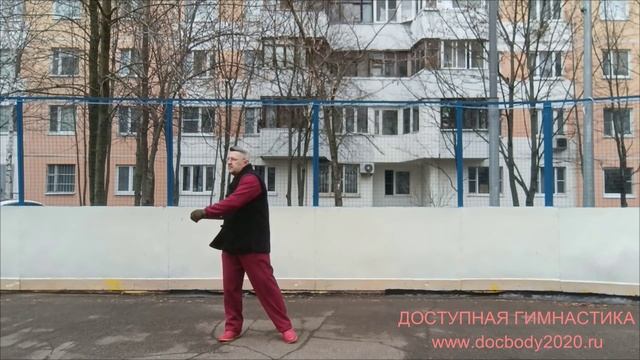 Упражнения с палкой-тростью на спортплощадке