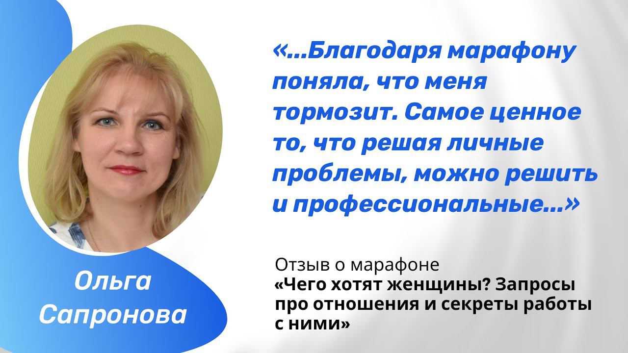 Отзыв Ольги Сапроновой о марафоне Натальи Заиграевой "Чего хотят женщины"