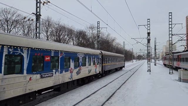 красавец ЧС6-019 с туристическим поездом №929 "В Карелию на поезде Деда Мороза" и Ласточка ЭС2Г-132