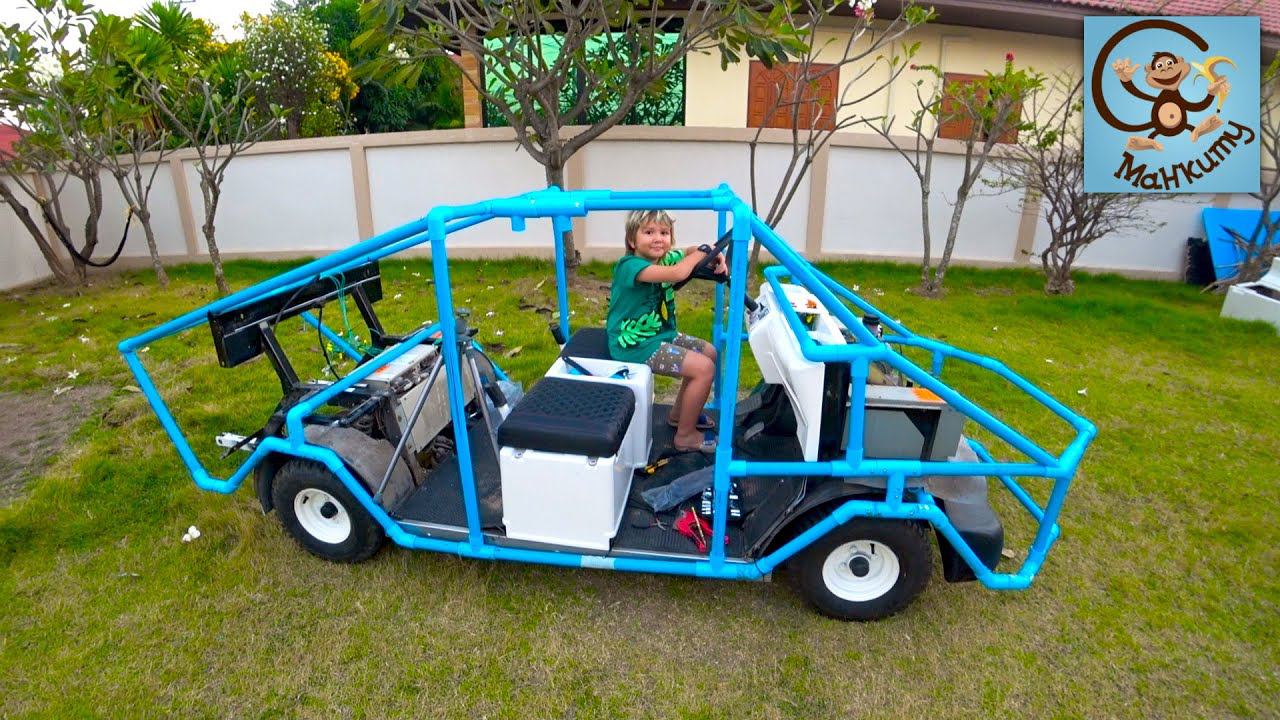 Милан и Папа продолжают делать полицейскую машину из гольф карта. В этот раз мы построим основу корпуса для машины, на которую в бушующем прикрепим стены. А строить корпус мы будем из так полюбившимся нам пластиковых труб.