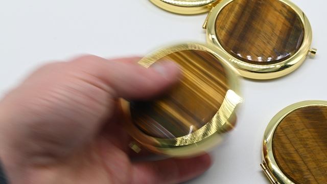 Зеркальце складное с камнем тигровый глаз, круглое, золотистое. 3400702