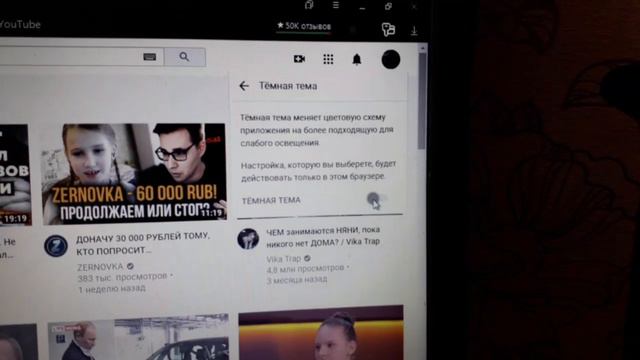 как поменять белую тему в ютубе на темную.