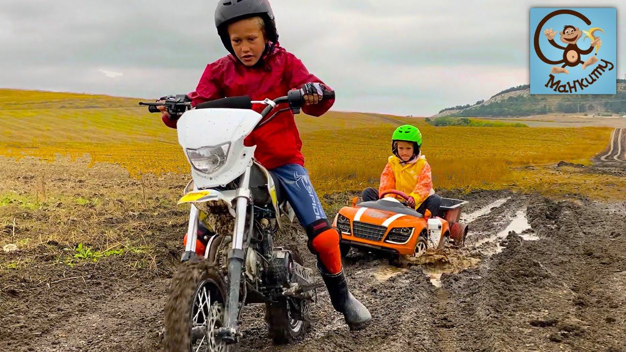 Привет. В этом видео Диана и Даня отправились на своих детских машинах кататься по грязи и лужам.